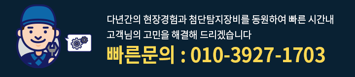 동네방네 누수탐지는 최고의 전문가집단으로 골치아픈 누수해결을 위해 불철주야 노력하고 있습니다. 믿고 맡겨주시면 합리적인 비용과 책임시공으로 최선을 다하겠습니다.